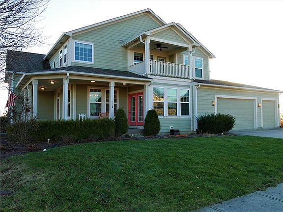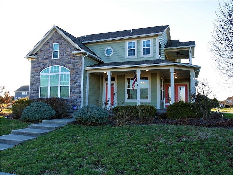 Beautiful home on a corner lot with wrap around porch and 3-car garage in the highly-desired Village At Heartland Crossing neighborhood in Camby. On the first floor will find amazing hardwood floors, a media room with built-in surround sound, optional office or 4th bedroom, eat-in kitchen with breakfast bar, formal dining room, and a two story living room with spectacular windows and a fireplace. Upstairs boasts three bedrooms including a master bedroom suite with your own personal balcony, walk-in closet, and updated bathroom. Outside you features a hot tub, pergola, fire pit, and a beautiful paver patio. Heartland Crossing Golf Course and the community pool are just a short walk away! This home is a MUST SEE!