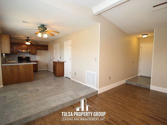 Cute 3 bedroom Coweta home! Fresh paint throughout, newer vinyl flooring and carpet. Cozy living room with corner fireplace. Eat in kitchen with gorgeous bay windows - plenty of cabinets and pantry space - comes with dishwasher and gas range. Updated bathrooms with modern vanities. Master bedroom has walk-in closet and private half-bath. Laundry hookups in two car garage. Huge backyard - storage shed - fire pit.