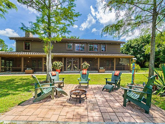 Absolutely UNIQUE! This is one of the most meticulously manicured estates in Jupiter Fl. Quality built in 2002 of cedar and redwood log construction and situated on a stunning 6.5 Acres of completely fenced pristine land that backs up to a 12,000 acre private preserve. Paved roads take you to the gated entrance of your very secluded compound. This is the perfect property for a large family or a corporate retreat. Take a stroll on the 'walking path' around your very own private 2 acre lake stocked with large mouth bass and imported tilapia. This custom 4160 SF under air, 5300 total log cabin has been designed and custom built with intricate detailing, sparing no expense. Impact glass, New A/C's 2015, water heater 2016, electric car charger, generator ready. Click for more...