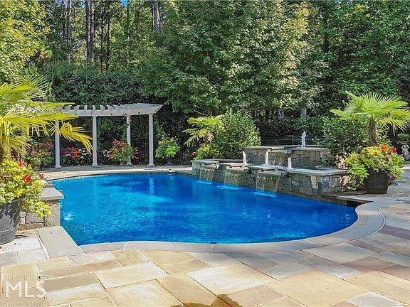 Elegant executive home in prestigious gated country club community in the heart of Milton. Perfectly sited on nearly 4.5 acres, this luxurious masterpiece awaits your personal touch. The completely private backyard is a true sanctuary, with covered outdoor living spaces, resort-style pool and hot-tub and perfectly manicured grounds. Inside, grand rooms with soaring ceilings combine with intimate and comfortable living spaces. An elevator allows for easy access to all 3 floors. Restored antique lighting throughout. Unfinished terrace level has room for a bowling alley.