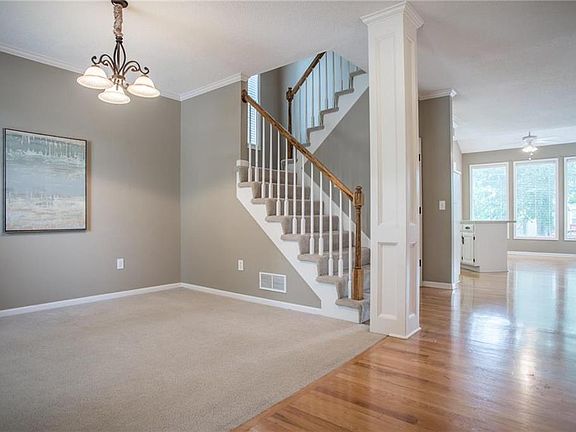 MOVE-IN READY Blue Valley home!! SUN FILLED rooms with great natural light. Gleaming Hardwood Floors. Bright floorplan. Breakfast room off kitchen. Formal dining room. Cozy living room with fireplace. Laundry room on main level. Spacious master suite with vaulted ceilings. Master bath features jetted tub, double vanity, and a MASSIVE walk-in closet you have to see to believe!! Walk-in closets in bedrooms. FINISHED, walk-out basement w/ full bath. Walks out to patio in fenced backyard. Deck off kitchen. 2-car garage