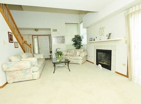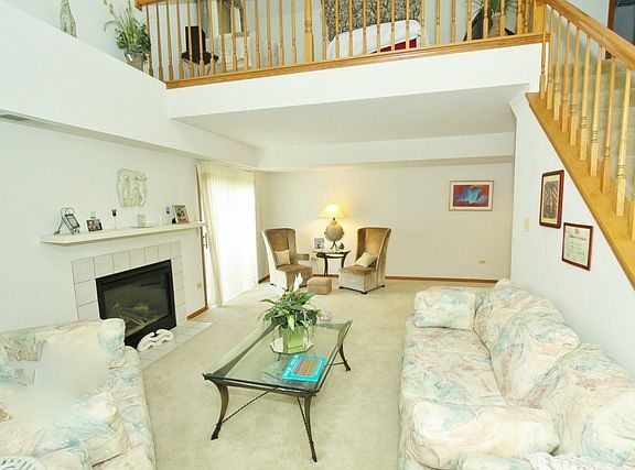 Priced to SELL!!! end unit with 16 feet - 2 story living room and second floor loft area, features fireplace and sliding glass door leading to private patio and grass area. Large kitchen with plenty of cabinets with peninsula and eating area. Master suite with sitting room and his & her closets. Easy conversion to 3rd bedroom. Bathroom with tub and separate shower. Loft overlooking living area. Great unit with 2 car garage. Convenient location! 2 minutes to I-55!