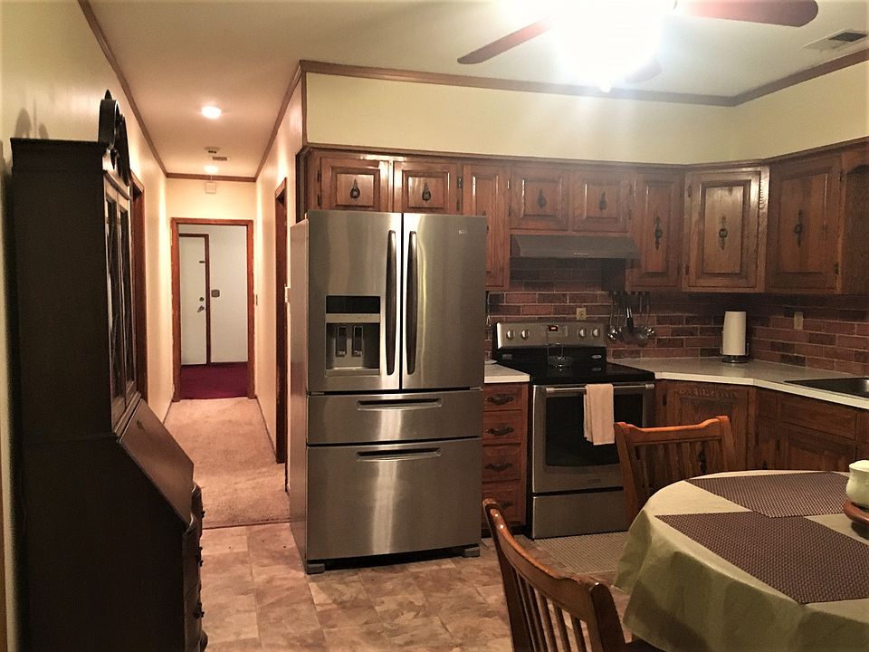 Low Maintenance & Low Utilities is what this Country living full brick 1560 sq ft ranch style home offers. NEW ROOF NOV. 2016! 3 Bedrooms (Master en Suite), & new Maytag Stainless Steel Appliances. Woodburning fireplace, ceiling fans, & patio. Low maintenance on this total electric home with vinyl windows. Located on 4.2 Ac.with lots of mature pecan trees (20), black walnut tree, and nicely landscaped yard. Acreage partially fenced. Nevada School District. 2 & 1/2 car attached garage. New Hot Water Tank and Dishwasher Jan. 2017.