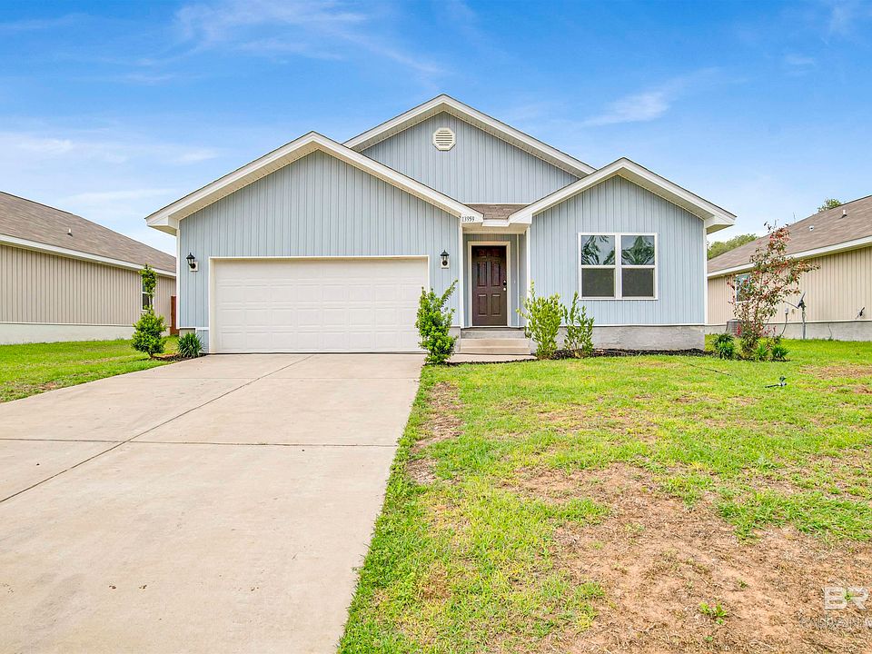 Welcome to your beautiful home in the Magnolia Pines subdivision! Situated only a short ride away from shopping and dining in vibrant Downtown Foley, and only half a mile from Magnolia Elementary, convenience and community awaits you. This 4 bed 2 bath home is Gold Fortified and has 7 years remaining on the Builder's Structural Warranty. This property features sleek vinyl flooring throughout, with freshly installed vinyl flooring in the bedrooms. The inviting open kitchen is complete with a large island, stainless dishwasher, stainless refrigerator, stainless smooth top electric range, over-the range microwave, and a brand new garbage disposal, perfect for entertaining. The primary bedroom has a spacious walk-in closet and the primary bathroom features a luxurious double vanity, large soaking tub, and a separate walk-in shower. This house also features a 2 car garage, a spacious fenced-in backyard and a covered patio to unwind outdoors. Don't miss your chance, schedule your showing today and make this dream home yours!