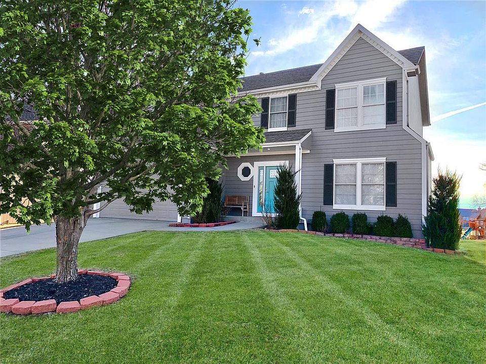 Fabulous BLUE VALLEY UNICORN nestled on premium .45 acre lot backing greenbelt*Party sized patio & play area*Expanded Lyric plan customized w/ beautiful 3/4 bath on 1st flr*Den/dining/1st flr guest rm option*Grt rm & kitchen are wide open & feature granite & high end SS appls*Tile in all baths*Vaulted master suite w/Texas-sized closet*Finished, sunny daylt lower level w/half bath & plenty of storage*Blackbob park adjoining neighborhood*BV's Liberty View Elementary in the neighborhood*It's PERFECT...don't hesitate!