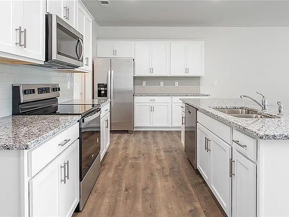 Step through the front door into a bright and open floor plan. A convenient half bath welcomes you as you flow into the inviting living and dining area. The heart of the home is the gorgeous open-concept kitchen, which is sure to impress with its full-size island perfect for meal prep, casual dining, and entertaining.Stunning granite countertops and Shaker-style cabinets.