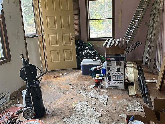 This would make a cute starter home or second home to get away to on the weekends. It sits on close to 3/4 of an acre with a stream in the back. Located in the Pocono's, a short drive to Lake Wallenpaupack. The main house and backroom roofs were just replaced along with a new modified driveway. I have purchased many items for this house already including flooring for all the rooms. New shower head, curtain/rod, toilet paper holder and light fixture for the bathroom. All new three prong plugs, light switches and covers for the entire house. New kitchen light fixture, kitchen sink faucet and new hardware and paint for the cabinets. I also purchased a nice set of vertical blinds and matching curtains for the Livingroom. With a little tlc you can make it your own.