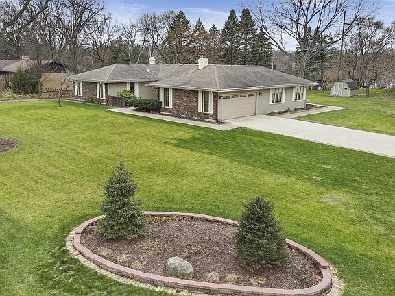 Ideally located 2,400 sq ft 4BR brick & cedar ranch home on landscaped half-acre+ corner lot! Close to Tyler Creek Forest Preserve, bike path, train and interstate, Fox River, Judson University and more. Welcoming front courtyard, 2.5-car side load garage, extra wide driveway and walkways, gutter guards, huge backyard patio with 12x12 storage shed and plenty of room to roam. Step inside to find a pleasing neutral decor and thoughtful updates. Inviting living room with adjacent formal dining room with bowed window overlooking backyard. Spacious eat-in kitchen with granite countertops, new stainless steel appliances, breakfast bar, tile backsplash, laminate floor and slider to backyard. Family room complete with floor-to-ceiling masonry fireplace with gas logs, built-in bookshelves, laminate floor and slider to backyard. Generous bedroom sizes including the master suite with private entrance to patio, walk-in closet and private bath. Providing even more living space is the finished basement with office, game room, workshop, tons of storage, freezer included, and a half bath. Additional storage in pull down attic. Nothing to do here but move in and enjoy! Unbeatable location and an outstanding price make this home a MUST SEE!