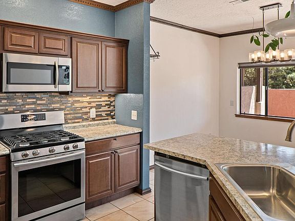 Location,location, WEST Sedona beauty ! You can have it all in this 1,933 sq ft , Two bedroom, PLUS Den ,two bath with views. Interior stairs with the master bedroom and den upstairs. Lovely backyard setting as well as upstairs walk out deck with VIEWS. Walk to Whole Foods, shopping, hiking & biking, if you choose. The downstairs has an open floor plan and remodeled kitchen with stainless steel appliances. Upgraded kitchen, skylights throughout, creative tile ( in the bathrooms also ) and "floating " sinks". A community pool ( seasonal) give added opportunity to relax in your new carefree lifestyle. Refundable Deposit is $ 5,900. Pet deposit $500. Renter pays : gas, sewer , electric & internet /cable. Owner pays water& trash . Parking for 2 cars , 1 is covered . 1 small pet allowed . One year lease .
