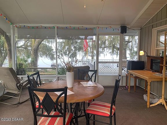 Picture this: Your own little classic waterfront cottage, with no immediate abutters, perfectly sited at the east end of Little Lake Kerr in the Salt Springs Resort in Salt Springs, FL. Your cottage - the Captain's Cottage - is block built, sheathed with vinyl, with a metal roof. This lot is 11,691sq ft with lovingly& richly landscaped bounded by a traditional split rail fence. Your driveway is large enough to accomdate multiple vehicles. The 12x30 foot vinyl deck, the 16x20 aluminum framed screen room, and windows aplently will keep you connected to the great outdoors. Shade is provided by several large oaks and hickory trees gaily adorned with Spanish Moss that dances in the breeze. Sand hill cranes wander about. Your canoe is at hand for an early morning fishing trip along the shoreline, or take the kayak if you prefer. Your 2023 Sun Tracker pontoon boat with 40 hp Yamaha floats lightly at the water's edge a few steps from your door, providing a fine platform for afternoon cocktails or a slow cruise around the lake. Glorious sunsets will prompt oohs and aahs from your visitors. Your golf cart will get you to the nearby store and post office. Your electric bike will propel you around the paved streets of the resort, or if you like, around all of Lake Kerr! Inside the cottage, the tile floor, vaulted ceiling and open floor plan feels spacious. A plush queen bed graces the master bedroom. A single bed is tucked into one corner of the main room. The cottage is fully and nicely furnished with furniture, cable TV, a fully equipped kitchen including small appliances, cookware, cutlery, etc. The kitchen was recently updated with expanded cabinet space and handsome quartz countertops. A 10x12 8x10 shed houses a washer and gas dryer, and storage for yard tools. A 7x12 enclosed trailer provides additional on-site storage space. Salt Springs Resort is a gated community. Its 2000' (est'd) water front, tennis courts, two swimming pools, horse shoe pits, and large clubhouse provide numerous social and recreational opportunities. Nearby forest trails offer hiking, 4 wheeling, or horseback riding. Explore the famous Salt Springs Run, Lake George, and the Oklawaha River, or take a day trip and head to the beach, Daytona beach est. 45 mins away. 40 minutes from Ocala FL & 23 miles to Palatka FL. The Captain's Cottage could be the key to your next great adventure, as it has been for the current owner, Vern Maine, author of the Salt Springs Series - The Legend of Tomas