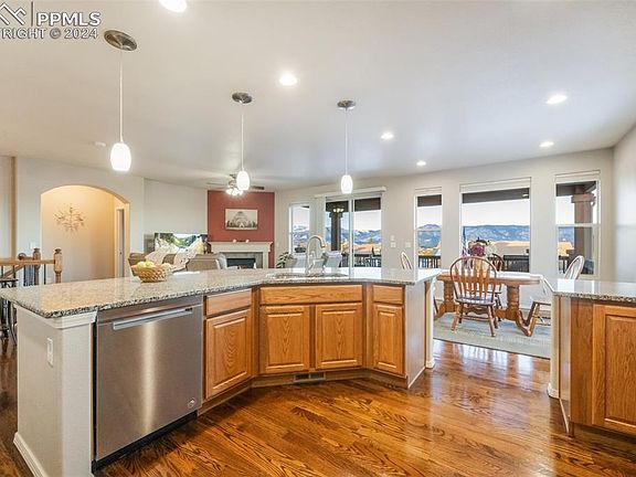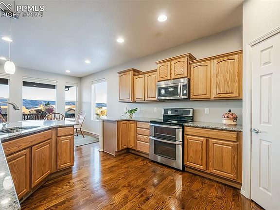 Welcome Home To “Paradise On Penfold” Where Comfort And Luxury Meet~This Stunning 4-Bedroom Residence, Complete With A Private Office, Offers A Harmonious Blend Of Style And Convenience~Backing To An Expansive Peaceful Yard, This Property Features Breathtaking, Views Of Pikes Peak, Providing A Tranquil Backdrop For Everyday Living~Entering You’ll Be Greeted By Gleaming Hardwood Floors~The Spacious Living Area Is Anchored By A Cozy Fireplace, Perfect For Relaxing Evenings~The Heart Of The Home Is The Expansive Kitchen, Thoughtfully Designed With A Grand Island With Ample Seating, Granite Countertops, A Corner Pantry, And Plenty Of Space To Inspire Culinary Creativity~Designed For Effortless Indoor-Outdoor Living, There Is An Expansive Composite Deck—Ideal For Hosting Gatherings Or Simply Unwinding While Taking In The Mountain Scenery~The Finished, Walk-Out, Lower Level Adds Versatility With A Wet Bar, Spacious Rec Room Equipped With Speaker System, 3 Additional Bedrooms And Full Bath~This Home Is As Functional As It Is Stylish, Boasting A Solar Power System, Central Air, An 80-Gallon Water Heater, A Pet-Safe Invisible Fence Offers Peace Of Mind And Additional Numerous Features That Simplify Daily Living ~Awesome Oversized 729 Sq. Ft. 3-Car Garage Is Fully Insulated And Finished, Plus The Extra Depth Accommodates Most Vehicles And Includes Pre-Wiring For An EV Charger~With Thoughtful Features Like A Ring Doorbell, Numerous Speakers, And Durable 2x6 Construction, Every Detail Has Been Considered For Your Comfort~Living In The Coveted Village Of Encore In The Flying Horse Community Is More Than Owning A Home—It’s Access To An Elevated "Low Maintenance" Lifestyle~Enjoy The Opportunity To Join The Community’s World-Class Golf Course, Athletic Club, Tennis And Pickleball Courts, And Stunning Pool Facilities All At Different Fee Structures~Come Experience The Sophistication, Scenic Beauty, And Welcoming Atmosphere Of This Exceptional Home~Your New Lifestyle Awaits!