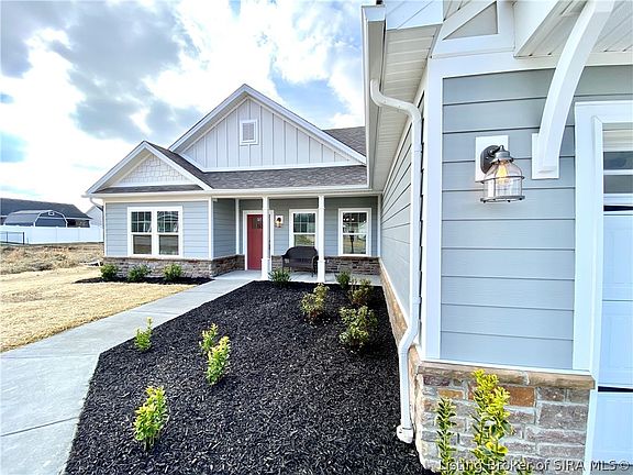 Custom featured home. New affordable construction that sticks out from the competition. Make yourself at home in this large 1622 sq ft home with a ranch style split floor plan. Check out the curb appeal with BRICK and a mixture of hardie board front covering. Covered front porch and tastefully landscaped. Enjoy your large open kitchen with beautiful cabinets, GRANITE counters, all matching stainless steel appliances including the refrigerator, farm house sink, custom lighting, back splash and tons of counter space. Step off the kitchen into your own personal owners suite with large walk-in closet, huge bathroom with dual vanity sinks, tiled walk-in shower. Talk about an awesome utility room that features washer and dryer hookup, work at home space with desk and stacked cabinetry and ample storage cabinets. All custom blinds throughout the home included. Time to head out back and notice a large porch and a huge yard. This home also qualifies for as little as NO MONEY DOWN to those who qualify through the USDA loan option to those who qualify. Quick access to interstate 65 with 6 lanes of Highway to downtown Louisivlle just 15 minutes away. Call today to see this great home today.