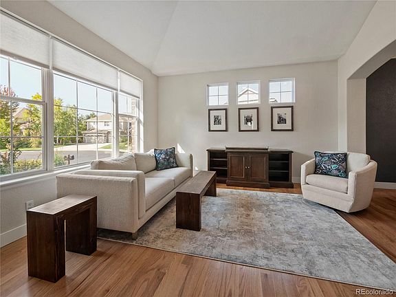 Don't miss your chance to own over 5,000 square feet in Aspen Creek! Parks, great schools, a pool and trails make Aspen Creek a highly sought-after neighborhood in Broomfield. The west-facing entrance greets you with expansive 18' ceilings, brand new hardwood flooring throughout the main level and an updated hardwood staircase, a unique offering in the neighborhood. Huge windows bring in plenty of natural light throughout the home. Upstairs is an updated 5-piece Primary Bathroom with a stand-alone tub and a massive walk-in closet. Additionally, you will find a loft, 2 bedrooms, and 2 bathrooms offering plenty of space for your family. The living room, open below the loft, has been tastefully updated with hardwood flooring, a custom fireplace, and custom built in shelving. The kitchen opens to the living room and has easy access to the back patio. It includes a large pantry, and an eat-in island. French doors on the main level take you into an office with custom built-ins perfect for office or art supplies. The 1/2 bath on the main level has also been updated with a new vanity and fixtures. New flooring and shelving in the mudroom/laundry connect the main level to the spacious 3-car garage. An unfinished basement offers the ability to bring your own personal touch and room to grow.