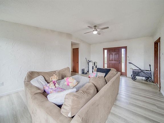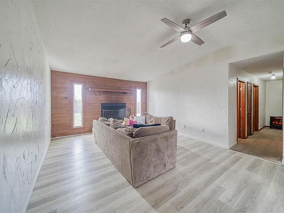 Welcome to this charming 3-bedroom, 2-bathroom home on a spacious 0.57-acre lot m/l in Plato! Step onto the inviting covered front porch and into the cozy living room featuring a wood-burning fireplace, perfect for relaxing evenings. The kitchen boasts beautiful custom cabinetry, an apron front sink, and sleek stainless steel appliances, offering both style and functionality. Marvel at the rustic wood beam dividing the kitchen and dining space! The primary suite includes an ensuite bathroom with shower, and a walk-in closet for added convenience. A laundry/utility room located off the kitchen adds practicality to daily living. Step outside to the generous fenced backyard, ideal for entertaining or enjoying the serene surroundings. The property is enhanced by mature trees, providing shade and privacy. Put your finishing touches on this spacious home combining comfort and charm! Schedule your private showing today.