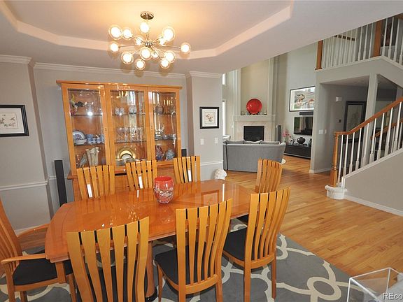Wonderful house in a great neighborhood that has mountain views and private access to Cherry Creek State Park. The main floor has vaulted ceilings, a living room, dining room, and family room with a gas fireplace. The kitchen has granite countertops, modern stainless steel appliances, including a professional Viking gas cooktop, and 30" double ovens. There is room for a table for six in the bay window adjacent to the kitchen. There is also a main floor primary bedroom with a five piece bathroom including a separate tub and and enclosed toilet. The marble floor is heated. In addition, there is a room that could be used as an office, music room, or media room. The main level also includes a laundry room and a powder room. Upstairs, there are two bedrooms, another full bathroom, and a large loft that could be converted into an additional bedroom if necessary. Downstairs is an entertainer's paradise with custom 10' ceiling height, a full bar that has a sink, refrigerator, and dishwasher. There is also room for game tables, and an area for a theater that is currently set up for a 120" screen. There is an exercise room, another full bath, and a generous storage and utility room. The spacious backyard has a brick patio, lots of grass, and is fully fenced. The attached three car garage is oversized and is 3' deeper than standard so larger vehicles can fit or more storage is possible. New furnace in 2022, new A/C in 2015, New roof in 2015. Radon mitigation system installed in 2021. This house is still owned and loved by the original owners who are reluctantly leaving because of another opportunity. Close to shops and restaurants. Easy access to I-225 and Arapahoe Road. 30 minutes from DIA. Walking trail into 3,300 acre Cherry Creek State Park and 800 acre lake with boating, fishing, beach, dog park, picnic areas and more. Cherry Creek school system.