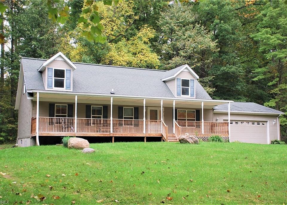 Welcome to this well maintained home located in desirable Wakeman! This Move-In ready home is nicely situated on almost 8 acres of land surrounded by trees and its own creek. Unique and amazing views from the porch and patio. This home offers you a spacious family room and a large eat-in kitchen that has plenty of cabinets and counter-top space. A sliding glass door off of the kitchen leads you to your private wooded retreat. The first floor also features a master bedroom and bath, a laundry room, second bedroom and an additional full bath. The second floor offers many possibilities..it currently has a half bath and one large bedroom, but it could be converted to two bedrooms or a private master bedroom suite. A partially finished basement has plenty of space for a recreation area or storage. New carpet on main floor and newer paint. Don't miss this chance to own your own private wooded retreat.
