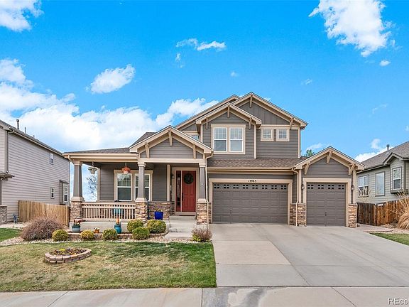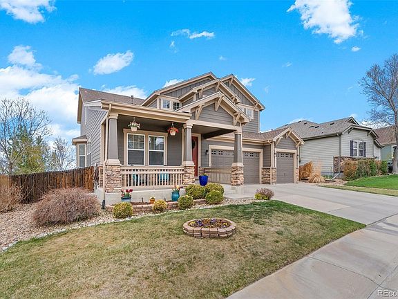 Gorgeous two-story home on a quiet street in Homestead Hills! This oversized lot offers premium, unobstructed, mountain views and a large, private, fully fenced yard. New exterior paint and a covered front porch give this home an attractive curb appeal. The main level layout is expansive and open. From the foyer, glass French doors lead to a private office that could also function as a den or gym. The formal living and dining rooms are spacious and offer an inviting space to entertain. At the back of the home, the kitchen has been recently and tastefully updated with professionally painted cabinets and new hardware, and provides ample storage with a corner pantry and abundance of cabinets. A second dining room presents a more casual space to gather, and light pours in through a large sliding door and windows that span the entire back wall of the home. A large family room centers around a cozy gas fireplace with plenty of space for large, comfortable furniture. Heading towards the attached 3-car garage, you’ll find a private powder room and a large laundry room with utility sink and cabinets. A grand staircase at the center of the home takes you upstairs, where French doors lead to a spacious primary suite with a 5-piece ensuite and large walk in closet. Two additional bedrooms share a full bathroom located between the two, while a fourth bedroom with its own private ensuite rounds out the upper level. The basement is a light and bright garden level, with high ceilings and full daylight windows. A convenient kitchenette, family room, two bedrooms and a full bathroom create endless possibilities for the basement. This home has been meticulously cared for for over 17 years. Enjoy proximity to Homestead Hills Park and Trail Winds Park, located just minutes away from your new home, Or relax and unwind in the backyard, where you can enjoy the beautiful Colorado scenery. This is the perfect opportunity to own your dream home in a prime location.