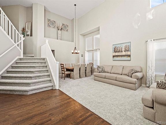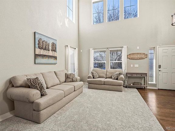 Beautiful two story home with upgrades throughout in the desirable McKay Landing community! Perfectly located in the neighborhood, you’re close to the community pool, clubhouse, several parks, walking trails, McKay Lake and Broadlands Golf Course. This home welcomes you in with a bright and open great room with tall ceilings and plenty of natural light and a well laid out main floor living area featuring hardwood floors, new carpet, remodeled powder bathroom with quartz counters, and office with glass French Doors. Enjoy entertaining in the spacious family room with new paint, new crown molding, built-in entertainment center and fireplace. The beautifully upgraded kitchen is a chef’s delight with newer Stainless Steel appliances, walk-in pantry, kitchen island, granite counters and refaced cabinets! The upper level boasts new carpet, a remodeled full bathroom and four great sized bedrooms including the primary oasis with vaulted ceilings, walk-in closet and remodeled 5pc bathroom with dual sinks, quartz counters, herringbone tile surround soaking tub and seamless walk-in shower giving you a spa like feel. The full unfinished basement gives you plenty of space for storage and the option to customize and finish to your liking. Step outside to your large backyard with oversized patio and pergola, great for outdoor entertainment and taking in the serene setting! Truly a great location, just a short drive to Orchard Town Center, Denver Premium Outlets, Flatiron Crossing Mall and more. Nearby major routes for convenient commuting to Denver, DIA, Boulder, Lafayette and Louisville. Don’t miss out on this fantastic home in a great location!