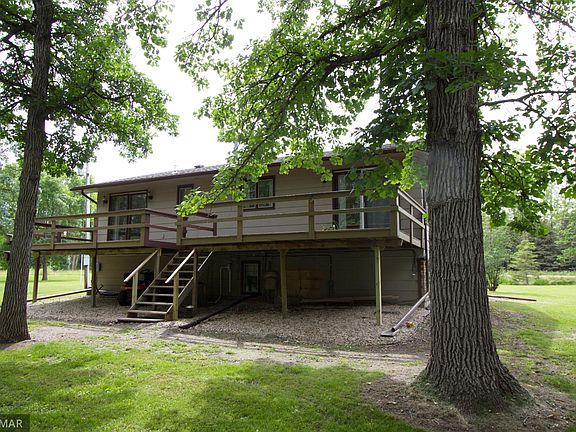 Large corner lot with mature oaks. This split foyer home features a huge master bedroom on the upper floor, large living room, and the dining room has sliding glass doors to the almost full length deck on the east side. Both bathrooms are extra large and the lower bedrooms are good sized with nice closets. All the lower level flooring is brand new!! The family room is huge and there is a knotty pine office in the SE corner! This home has lots of storage under the foyer plus a large double car garage! In addition, there is also land south of the Richard Haugen driveway that is part of this property. The electric average is $115 for past 11 months, but the home was not fully occupied.