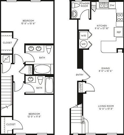 2 bed 2.5 bath, new, granite countertops, tile back splash, wood style flooring in living, kitchen, and dining, tile in bathrooms, carpet in bedrooms, walk in closet, attached garage, half bath downstairs, stand up shower, garden tub, 10 foot ceilings. Valet trash, pest control, amenities, maintenance, washer & dryer included. Water, electric, phone/cable/internet, $20.00 disposal fee separate.
