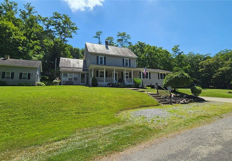 If these walls could talk - what would they tell you? This home has been tastefully updated and is ready for your personal touches, but still keeps the character you seek in an older home. From the deep set window sills, an intricate carving on the dining room door, the beautiful wainscoting , and natural built ins - all lend itself to the uniqueness of this home. But then you will appreciate the updates offered here! A convenient mud room leads into the completely updated kitchen (newer plumbing, wiring, lighting, flooring), Kraftmaid cabinets, awesome backsplash and countertops, and large pantry. The spacious dining room is the "heart" of the home, with a wood burner, and enough room for your large gatherings. The home features a large first floor bedroom with oversized closet. There is a nice sized living room, a first floor office, and also a large family room! Love this family room with a sitting/entertainment area, You also have built in shelves and window seat! But wait - there's more! Upstairs are the three bedrooms, a reading nook, and a full bath! Of course you have a first floor laundry and half bath! Outside is just as picturesque - with a porch that welcomes you home, to a summer kitchen that has been fully remodeled into your man cave, she shed, kids gaming or an extra bedroom for overnight guests, meandering stream, and additional outbuilding with a recently added lean to! The owner has added a new deck for outdoor entertaining in this backyard oasis. The home water system is fed by a spring with chlorination system that meets county standards. The stained glass on the front porch will stay is original to the home.