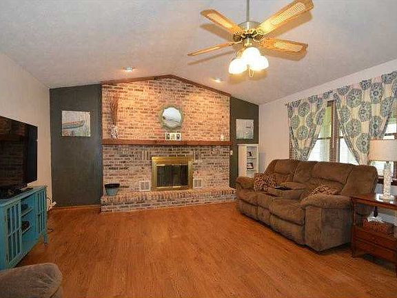Wonderful ranch style home on close to an AC of land. Located on quiet cul-de-sac of Lakeshore Dr just short walk to view lake. Home offers spacious entry-6 panel French dr leading to fam rm w/cathedral ceilings. Great view of woodburning firepl w/flr plan to kit. In 2012 kit was updated w/new cooktop, wall oven & garbage disposal. 2015 new hardware on cabinets along w/faux granite countertop finish. Lots of liv space incl both liv & fam rms, brkfst nook & formal din or office area available. Home has storage galore. Master bdrm has walk-in closet as well as other 2 bdrms have double closets. 18x12 sunrm close to kit for entertaining. Bkyd has privacy w/no rear neighbors (tree house will not stay). Fenced bkyd has many fruit trees incl 4 peach 1 cherry 2 pear & 2 apple. Get ready to harvest & enjoy. 2+ gar has lots of storage.