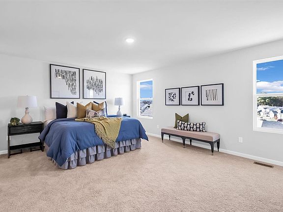MOVE IN READY! Be the first owner of this new construction, 3 BD, (plus a Bonus Rm), 2.5 BA, 2,219 sq ft, 2 story home in the picturesque Windswept Farms neighborhood by Consort Homes. The exterior is eye-catching with partial stone, vertical and shake accent siding, arch shingles, large front porch, garage coach lights and full yard sod. Features, along with amazing Consort Homes standard features, include an open floor plan, 9 ft ceilings, laminate plank flooring, Designer Kitchen, staggered height cabinets w/crown, quartz countertops, glass front accent cabinet, island w/seating bar, SS appl, gas range, Great Rm window wall, main floor laundry, walk in closets in every bedroom, Low E windows, 50 gallon water heater, pest shield treatment system, a walkout basement, High efficiency and zoned HVAC and more. Windswept Farms is a 174-AC master planned community that include onsite amenities such as community barn-style pavilion, community gardens, and lots of common ground.
