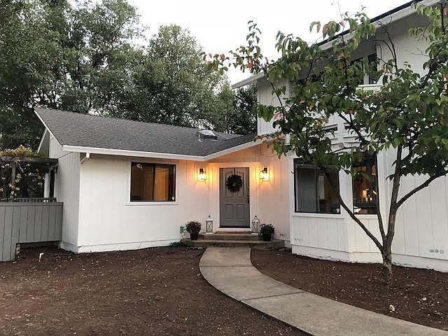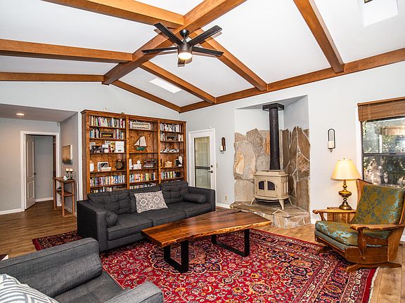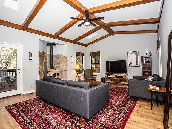 This a rare retreat close to all Redding amenities. Owned solar is a year old and will be paid off at the close of escrow by seller (30K) , newer wood stove, new ext paint, attic vent fans, LED lights, new pool equipment. 2 Bedrooms w/ outside entrances downstairs. 2 bedrooms and a half bath have been added upstairs. $100-150 for ALL utilities. Overlooking a greenbelt with a large deck