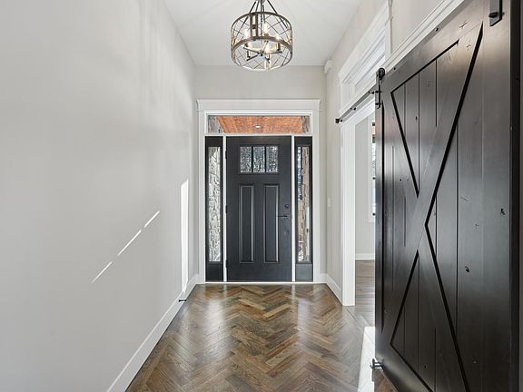 Welcome to your dream home nestled on 2.47 wooded acres located in the Hudson School District! This exquisite multi-level home offers comfort and luxury at every turn. Step inside to find a spacious living area featuring 4 bedrooms, 4 bathrooms and 1,852 finished sq ft on the main level. The kitchen is a chef's dream with the large island, quartz countertops, stainless steel appliances, soft close cabinetry, lots of cabinet space and a spacious pantry. The home features in floor heat in the basement, garage and primary bath. You will love the primary suite, a true retreat that promises luxury and relaxation. It features his and her closets, double vanity, soaking tub and a large walk-in tiled shower to provide a spa-like experience daily. The living room showcases a stunning, cozy fireplace with ten-foot ceilings. You will love the dream basement for your family and guests with a sport court, wine closet, wet bar, theater setup, custom bunk room. Concrete driveway and landscape package included. Enjoy nature and tranquility of wildlife in your own backyard.