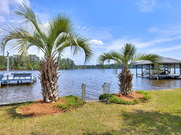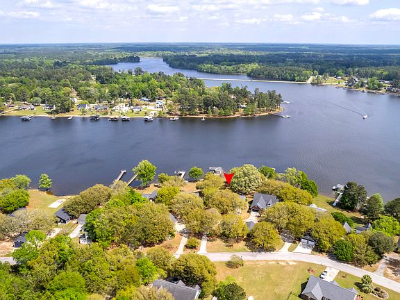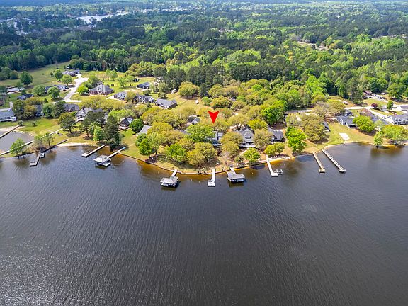 Spectacular, Lake Marion waterfront, 4BR, 3BA home in the popular Wyboo area. This immaculate home sits on a beautiful .66 acre deeded lot w/ mature oak trees & panoramic lake views. The property has a private dock, 1,221 sq. ft. detached garage w/ abundant storage above, as well as an attached 2 car garage. The custom built home offers breathtaking lake views & features: great rm. w/ 25' vaulted ceilings, built-in bookshelves & cabinets & fireplace w/ gas logs; remodeled kitchen w/ Quartz countertops, tile flrs, large island & generous cabinet space; laundry rm, full bath & coffee bar off kitchen; owner's suite w/ tray ceiling, sitting area, garden tub & walk-in shower; large enclosed porch. Driveway has ample parking. Boat ramp close by. New roof in 2023. A remarkable property!