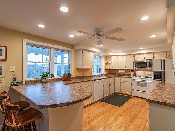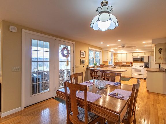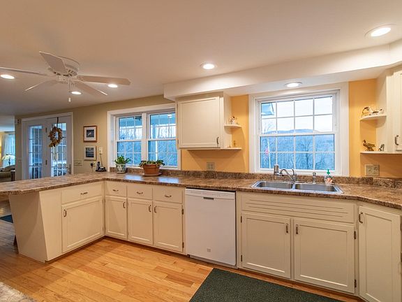 Take a look at this beautifully maintained ranch home on 5.3 acres. This home was extensively renovated down to the studs since 2009 including insulation, siding, moving walls, new wiring, lighting, drywall, flooring, etc. Gorgeous hardwood floors connect the living and dining rooms to the eat-in kitchen, with an abundance of natural light flowing through the large picture window and french doors opening to the front covered porch. The fireplace in the living room has a newer wood stove insert that will be sure to keep you toasty all winter long. Completing the main floor is a full bath with double sinks, primary bedroom and two additional bedrooms along with a half bath. Downstairs is a large family room with closeted storage, bonus room and 3/4 bath, along with laundry and utilities in the unfinished area. Direct entry via the 2-car heated garage. There is also a newer shed for your outdoor tools. The lot is nicely landscaped and surrounded by VT maples. Just a short drive to I-91, with all the benefits of country living. You don't want to miss this one!