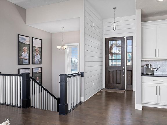 Like-new, walkout basement home in the popular Villages at Wicklow subdivision. This home boasts an open floor plan with a large kitchen featuring a huge walk-in pantry, quartz countertops, stainless steel Bosch appliances (including a 5 burner gas cooktop), ample counter and cabinet space, and a spacious dining area. The main level has 3 bedrooms with a split bedroom layout, a gas fireplace in the living room, and hardwood floors throughout (only carpet on main level is in the 2 spare bedrooms). The primary suite offers a soaker tub, a tiled walk-in shower, and an impressive walk-in closet. There is a functional and beautiful drop zone when you enter from the garage, as well as a powder bath and laundry room. Heading down to the basement you'll be greeted with another open and inviting living area with gas fireplace, a wet bar and dining nook. An additional 2 bedrooms and a full bathroom, plus a media/rec room wired for sound complete the finished space. There is also an unfinished storage/mechanical room, and a John Deere room. Great curb appeal with the craftsman-style exterior on this all-brick and stone home, with wood accents just around the side-facing garage. The backyard is fully fenced, with a covered deck off the main level and a concrete patio below. The subdivision amenities include: 2 pools, a clubhouse, covered pavilions, basketball courts, a playground, and fishing ponds.