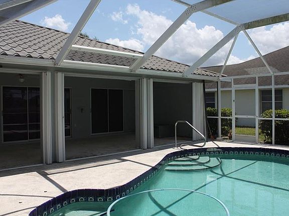 DEEP CREEK BEST LOCATION EVER on LAKE & GOLF COURSE, close to EVERYTHING! 3 bedroom, 2 bath, 2 car garage -- a great VIEW AND A POOL (heater there but no guarantee it works at this time)!!! Priced to remodel to your liking. This house is on a quiet street, away from the busier areas of this subdivision, but centrally located to everything in either Punta Gorda or Pt. Charlotte! It features a 40-year metal roof that looks like barrel tiles, a split bedroom plan (one bedroom comes with a murphy bed and desk arrangement for your guests or den), a pool bath, and a golf cart walking path right behind the house! Master bedroom has his and her closets and sliders onto the lanai. This house has "great BONES" with a centrally located kitchen with a view of the lake and golf course, along with a pass through onto the lanai! House needs "love" but will be well worth the effort! Accordion hurricane shutters across lanai by pool and in front of house.Call today to see.