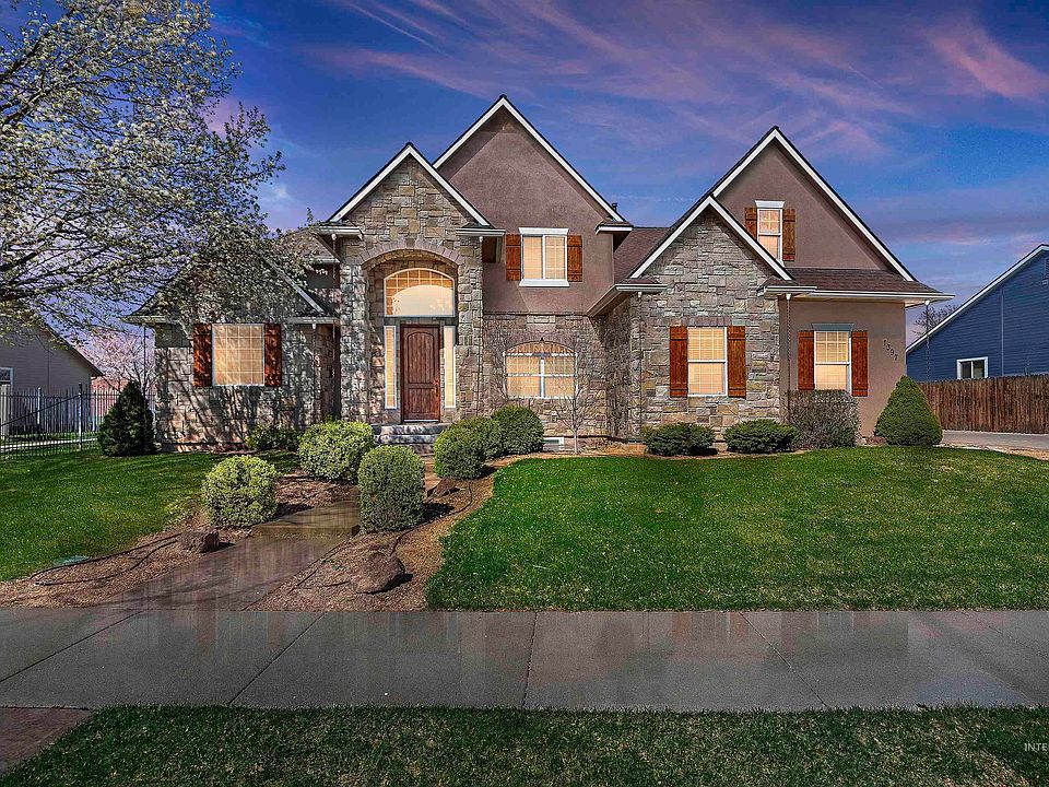 Located in Nampa's premier Fall River Subdivision, with no backyard neighbors, this luxury home has it all! Family room with stunning two-story stone fireplace. Stainless appliances, granite countertops, and knotty alder cabinets in the kitchen. Large bonus room upstairs. Impressive recreation room in the basement. Main-level master with travertine tile, jetted tub, walk-in closet, and a walk-in shower. Enjoy the evenings around the large sunk-in fire pit. Storage shed and RV/boat pad in the back. New Ext. paint and gutters.