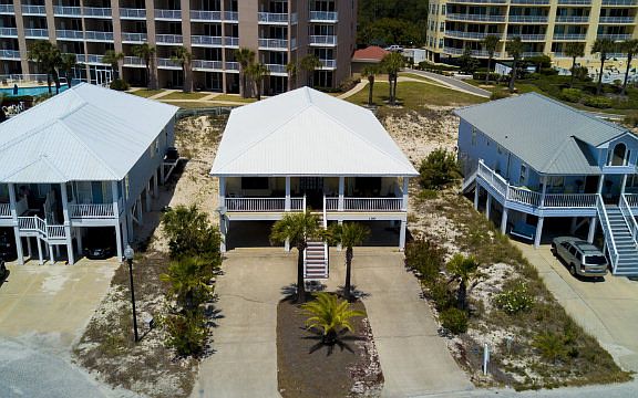Relax on your large porch and gaze at the Gulf! This beautiful 4 bedroom cottage is located in the gated community and sought after subdivision of The Dunes in Ft. Morgan. It features elegant furnishings, updated kitchen with stainless appliances, granite and a combination of tile, carpet and hardwood flooring. Plenty of covered parking includes storage for beach accessories. New A/C as of June 2016. GREAT VIEW and convenient location within minutes of a marina, restaurants and the Dauphin Island Ferry.