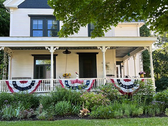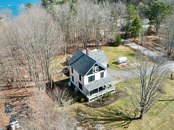 Gorgeous 1911 Late Victorian in the heart of Round Pond village with seasonal water views of sparkling Round Pond Harbor, a large wraparound porch, and incredible period details. Some of the period details include original maple herringbone floors, gleaming woodwork, doors & trim throughout, stained glass windows and more.