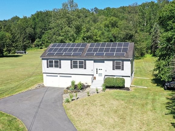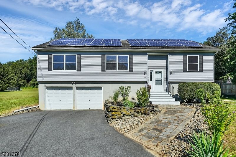 Welcome!! This three bedroom, two full bathroom bi-level is located on over 1.3 park-like, level acres, and is exactly what you've been searching for! The first level features a spacious living room, dining room which is open to the kitchen, and convenient laundry room! The primary suite has a walk in closet & full bathroom complete with a double sink vanity, stall shower & soaking tub.There are two other bedrooms on this level, both boasting hardwood floors, and a full hallway bathroom with a tub/shower. The lower level features a spacious family room, office area, storage and direct access to the two car garage! This home also boasts Solar panels & central air! Location, Location, Location!! This home is located within minutes to shopping, dining, movie theaters & more! Do not pass this one up!