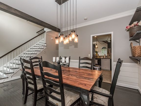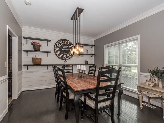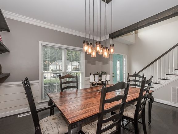 This stunning home is a must-see! Entry way leads right to the formal dining room with shiplap walls and gorgeous dark hardwood floors. Kitchen has granite counters and tons of storage with a breakfast bar and eat in area. Vaulted ceiling in the great room decorated with wood beams and shiplap in the trendy farmhouse style featured in many popular home shows! Owners suite on the main level has new carpet, walk in closet, and large owners bath with walk in shower and jetted tub. Upstairs has 4 more bedrooms, each bright and roomy; one of which is large enough to function as a bonus room, home office or more! Relax on the back deck overlooking the private, fenced yard. New roof installed in 2014.