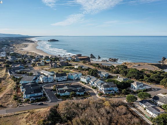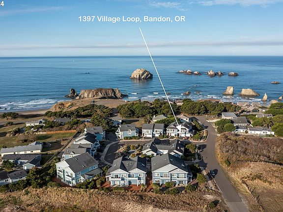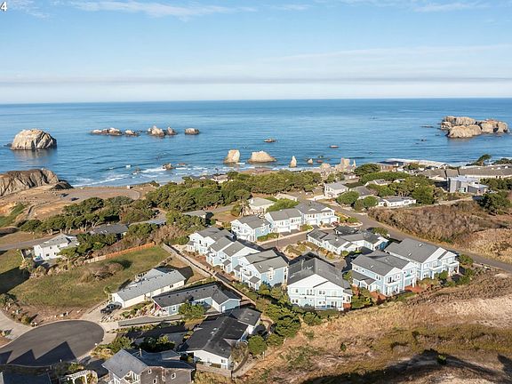 Experience the ease of coastal living at Face Rock Village. This beautifully designed 2BD/2BA 1372sqft corner unit offers a spacious tiled entry with a coat closet for quick access to on-the-go essentials, extra storage space, and convenient garage access, all leading to the upstairs unit.The warm and inviting living space features vaulted wood beam ceilings with fan, wood trim and built in feature with an abundance of natural light to open floorplan. Relax or entertain in the cozy living room with balcony access to enjoy the beautiful coastal outdoors. The kitchen is well-equipped with appliances, granite countertops, beautiful wood cabinetry, pantry, bar seating, flowing seamlessly into the dining area framed by a wall of windows offering serene sunrise views. Primary suite boasts a walk-in closet, ensuite with jacuzzi tub and separate shower, double sinks, a skylight, and a private west-facing balcony with a glimpse of the ocean and relaxing sunsets views! The additional room serves well as a guest room or office, while the second bathroom includes a shower/tub combo and skylight. A conveniently located upstairs hallway laundry area completes the layout.Additional features include a community gym, landscaped common areas, and a private path for easy beach access. Face Rock State Park access to the beach is a block away, located minutes from City Park, library, Sprague Theatre, and Old Town Bandon has boutique shops and restaurants await. Embrace outdoor adventures with water sports, a new marina, hiking, biking and for the golfers out there take a swing out at Bandon Dunes Golf Resort to the north or Bandon Crossing Golf Course to the south, a short drive either way!