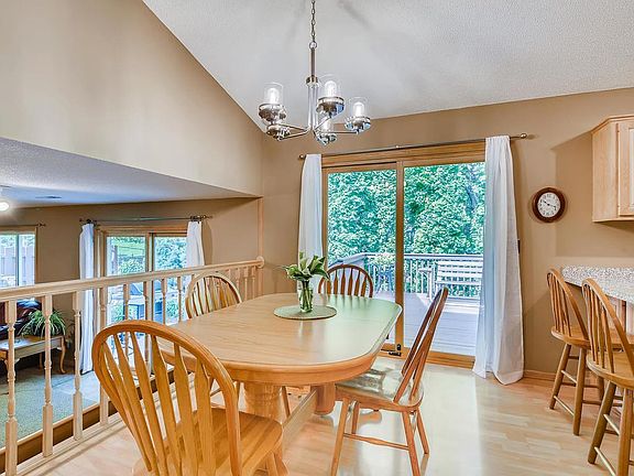 So many udpates! Don't miss this amazing home. Fresh paint, light fixtures, counters, stainless steel appliances, siding, driveway, and bathrooms. Huge deck, large patio with stunning water feature. Fenced flat yard. Move-in ready!