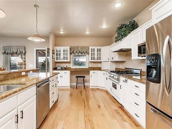 Beautiful home on 20 acres with mountain views! Large open kitchen with granite counters, Viking gas range and large island. Kitchen opens into the living room which has a fireplace, separate reading area and access to a spacious sun room taking advantage of the views. Master suite has jetted tub, 2 walk-in closets & balcony overlooking the valley and mountains. Laundry facilities located on upper floor for ease of access! This home has ample storage. A superior feature of this property is the large 56x32 shop (cost $78,000 to build!) is insulated and heated. The shop has a separate area that is walled off that the seller enjoyed as his wood working shop. There is a large covered patio area as well as a covered deck for multiple outdoor relaxing and enjoyment options. All info per seller and county records, buyer to verify.