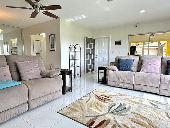 Great corner 2/2 condo in High Point West III. Beautifully tiled with white large porcelain tile throughout the entire home. No popcorn ceilings here, this home has modern flat ceilings with added hi-hat lights and fans. New A/C in 2021, brand new 2022 Washer and Dryer and also accordion hurricane shutters throughout. The Association has just replaced all of the roofs throughout the community and the Seller has paid in full for the assessment of $922. This property has a great location in Delray Beach, this 55+ community offers great amenities including pool, clubhouse, shuffleboard and tennis courts. The HOA maintenance fee includes water, sewer, cable, lawn care, all exterior maintenance.