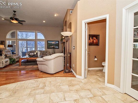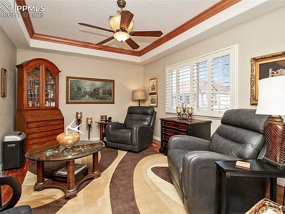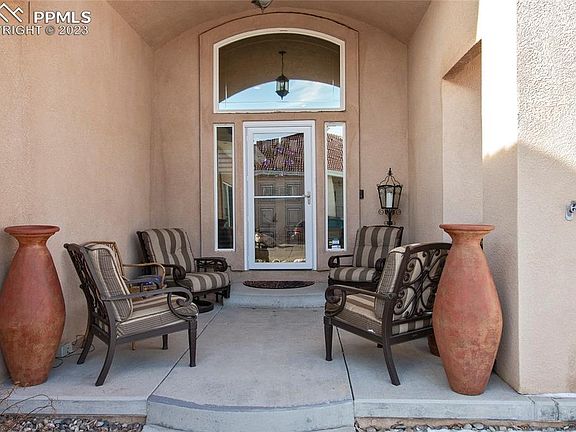 Fantastic luxury patio home with a great open layout, mountain views & tons of custom upgrades! This main-level living gem has it all: great room w/walkout, master retreat w/amazing 5-piece bath & walkout, gourmet kitchen w/high-end stainless appliances, fully finished lower level w/wet bar, perfect layout for guests w/included entertainment center. Please see suppl. remarks & pics for more details! Great home, great lot, upgrades galore..if you are hunting for a super clean, perfectly maintained home, this is the one! This home is located in a secure, gated community with exterior maintenance included and is truly immaculate w/tasteful upgrades throughout! Main level has cherry hardwood & tile flooring, plantation blinds, fireplace w/custom stone accents & granite ledge, built-ins w/updated cabinets & granite counters ~ Master retreat w/walkout & incredible 5-piece bath, huge slab granite shower surround, oversized jacuzzi tub, granite vanity counters & updated cabinets, monster walk-in closet ~ Gourmet kitchen w/high-end stainless appliances included, wrap around separated breakfast bar & separated formal dining area w/Pikes Peak view’s ~ Laundry room w/oversized maple cabinets, sink & granite counters ~ Main level den w/more built-ins & French doors ~ Outdoor covered patio w/remote controlled sunshade, motion lights & great Panoramic Mountain View’s ~ Heated oversized/deep 2.5 car garage w/epoxy floor & ceiling storage lift unit ~ The fully finished lower level is no stranger to upgrades ~ Possible 2nd master bedroom w/walk in closet directly connects to a custom jack & jill bath w/copper sink, granite counter & updated cabinets ~ Large bonus room with cedar lined walls for clothing storage or crafts ~ Large utility room w/storage shelves ~ Don’t miss this home!