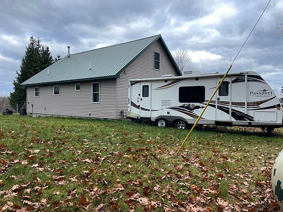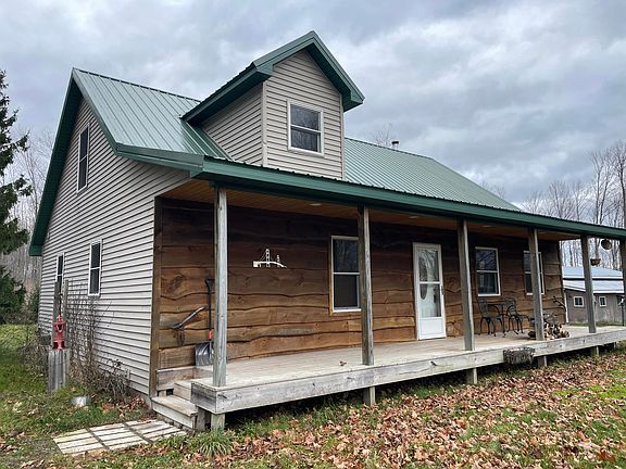Come see this beautiful home located on an idyllic country setting with 10 acres. The property has plenty of apple trees, raspberry bushes, pine trees, as well as a pond. This home allows for plenty of outdoor activities, such as gardening, grilling, campfires and hunting. Interior features include cathedral ceilings, a wood-burning stove, and a loft area that can be used as a third bedroom. For outdoor storage, there are 2 large pole barns, 1 small barn with fence and chicken coop, and another out-building towards the rear of the property used as a second deer blind. One pole barn has 2 interior rooms, each with its own wood burning stove, that would make a great man-cave or craft room. This picturesque property makes the perfect family home that allows for pets, livestock and hunting.