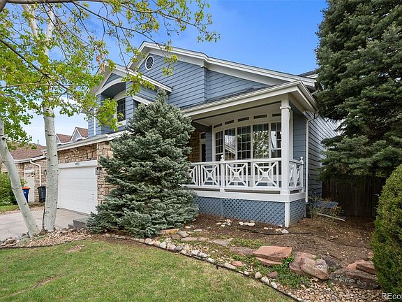 Experience Colorado living at its best! This beautiful three bedroom, three and a half bathroom home in a premium location with mature landscaping and amazing views is ready for its new owner to love. Upgrades galore including new paint throughout, new carpet throughout, updated light fixtures, many newer windows, a new roof, a large upgraded Trex back deck with new awning, a Nest thermostat, granite countertops, newer backsplash, and updated kitchen cabinets. The great room has newer built-ins and a gas fireplace for cozy evenings at home. Upstairs you will find the three spacious bedrooms, a fully remodeled primary bathroom, and a secondary full bathroom. Have peace of mind in warmer months with the newer AC and humidifier. There is also an attic fan. The walk-out basement is the perfect family room area with an additional fireplace and an updated slider with access to the spacious and private backyard. Quick access to bike paths, Bear Creek Lake Park, major roadways, Fox Hollow Golf Course, and the mountains!
