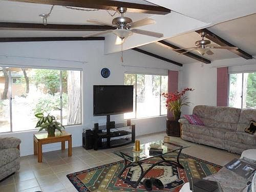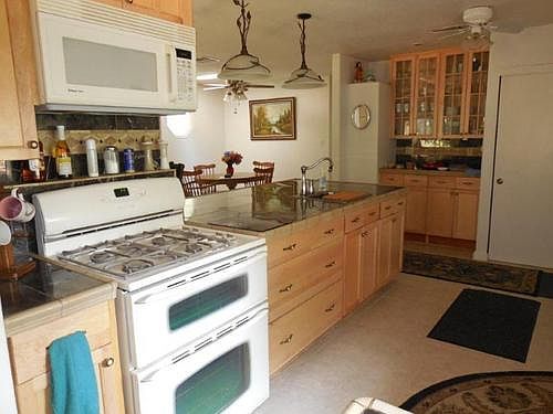 CB600 Beautifully remodeled home. Lovely open floor plan. Newer Kitchen Cabinetry and Beautiful Marble Counters. Large Center Island with secondary veggie sink. Beautiful tile flooring throughout most of the home and laminate in the 2nd bedroom. Cozy wood burning stove in the Living Room, and large Dining Room with custom Octagon window and skylight. High ceilings with ceiling fans, light and bright home with tape and textured walls in most rooms. Custom hidden sliding, stowaway coat closet. Master bath features dual sinks and separate tub and shower. Exterior features Cover Front Patio, Garden Area, and fenced yard, RV Parking and a 2 Car Garage. Newer Foam insulation under the home. Bonus/ Mud Room off the back door. Newer Roof in 2002, New heat and air in 2005/2006, new garage door in 2008. Just a lovely turnkey home! Be sure to watch the Virtual Tour.