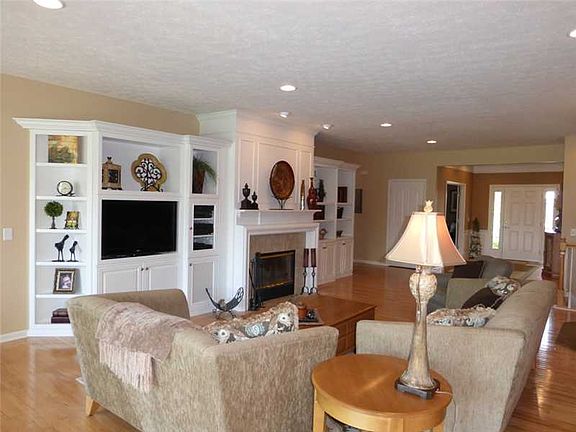 Quietly nestled in E Carmel on a private lot backing to common property. This ranch has incredible custom features. The expansive great room with hardwoods, built-ins & fireplace are great accents. The kitchen is enhanced by granite counters, center island, ss appliances & 42" cabinets. The master suite features a bay window, dual sinks, garden tub, separate shower & walk-in closet. Entertain in the daylight lower level with custom built brick bar, gaming, theater & 4th bedroom. 6ft bumpout in garage.