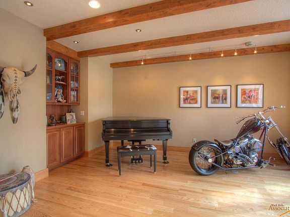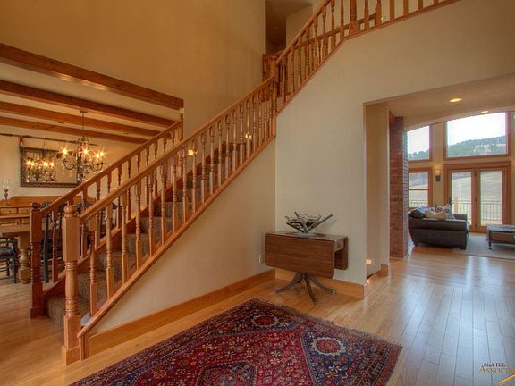 Gorgeous custom-built brick home in the midst of the beautiful Black Hills situated on 10 acres just minutes from Rapid City's medical corridor and downtown. The grand foyer and exposed knotty alder beams leaves a perfect first impression. Enter the one-of-a-kind gourmet kitchen featuring granite countertops, hickory cabinets, a massive island with copper sinks, commercial grade appliances, separate wet bar area, and hardwood flooring. The 19-ft ceilings and large windows in the living room bring in all the views of the tranquil valley and peaceful pines. The sprawling deck spreads the entire length of the home where you find a built-in brick fireplace to enjoy those relaxing summer night The amazing master suite offers his/her closets and vanities, free-standing soaking tub, and walk-in tile/glass shower. The upper level features three bedrooms and two full baths. The lower walk-out level offers two additional bedrooms, family room, wine cellar, and stone-surround gas fireplace.