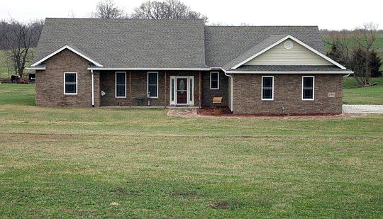 Country living on 3.03 ac, built 2008, slab home on 1900+ sf finished. 3BR, 2BA, dining room, office, screened back porch, jetted tub, water softener, 2-car garage with 1/2 BA! Rural water. $194,500. Bruce Quinlan 660-621-2072.