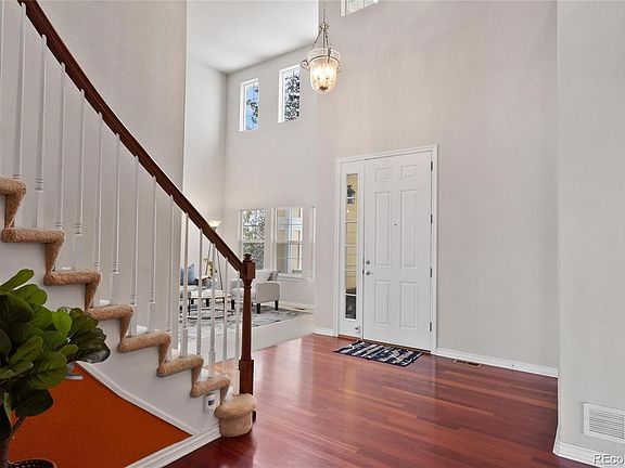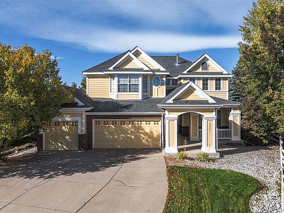 Welcome home to this fantastic golfer's paradise backing directly to the Broadlands Golf Course in the highly sought after quiet, Broadlands neighborhood. This spacious home with captivating mountain and golf-course views offers a large cul-de-sac lot, 3 bedrooms, 3.5 bathrooms, 3,717 Sq. Ft., and finished basement. This home offers vaulted ceilings, gourmet kitchen complete with SS appliances, large center island, pantry, built-in desk, and eat-in area. The family room features an inviting fireplace with granite surround, & an abundance of light. The main floor also boasts a large dining room, formal living room space, powder bath, and convenient laundry room with utility sink and storage cabinets. Enjoy a sizeable 3 car attached garage with side door access and built-in storage. Upstairs you will find 3 spacious bedrooms including an Western bedroom with fantastic golf and mountain views, ample closet space, and full hallway bath. The bonus loft offers endless possibilities and built-in desk. The Eastern secondary bedroom features a full ensuite bath, ample closet space, and bay window. The relaxing primary retreat also boasts gorgeous mountain and golf-course views, vaulted ceilings, spacious walk-in closet & 5-piece ensuite spa bath with soaker tub, and dual vanities. Enjoy the professionally finished basement with media/gaming area, and included pool table and golf hitting cage and simulator area (golf turf, screen, projector, netting, computer, and elevated ceiling). Out back relax on the approx. 450 sq ft deck (weight rated for hot tub), mature trees, garden beds, private & fully fenced yard, along with the can't miss views! Plus, enjoy all of the wonderful neighborhood amenities including the pool, golf course, nearby parks, playgrounds, & walking paths. This home is centrally located with easy access to I-25, E-470, Highway 7 & just 30 minutes outside of Denver & Boulder. Don't miss your opportunity to own this incredible home, schedule your showing today!